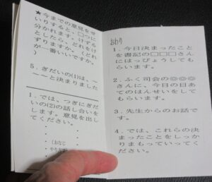 その簡易版を全員が引き出しに入れておいて、学級会がある時に、それを出して、一緒に会議を考えていくパターンにするといいわけです。